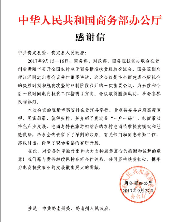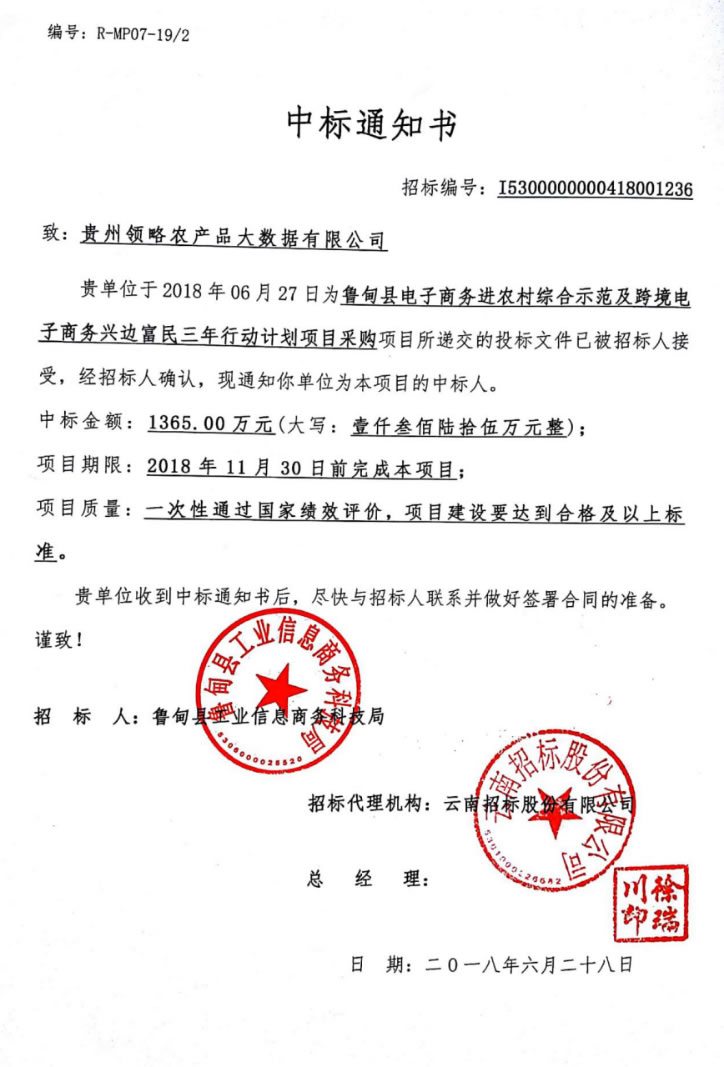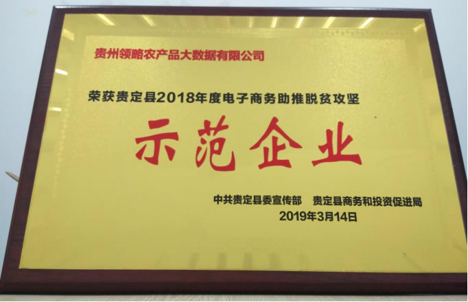 贵州领略农产品大数据有限公司荣获“贵定县2018年度电子商务助推脱贫攻坚示范企业”。