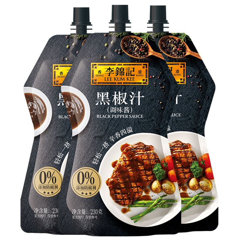 李锦记黑椒汁是采用精选原粒黑椒,以独特配方调制而成,可以直接用作扒类芡汁,亦可作煎炒调味之用。