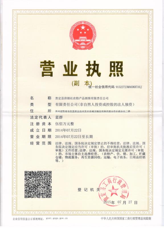 » 贵定县供销社农特产品销售有限责任公司
