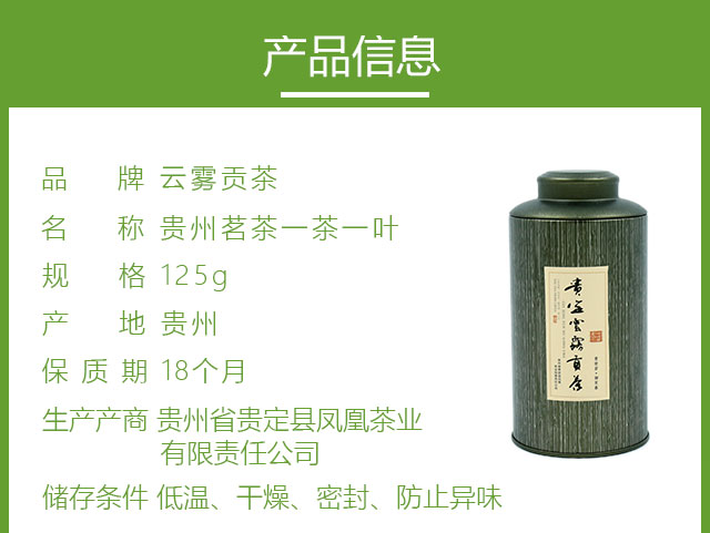 贵州茗茶一茶一叶啡色罐装125g